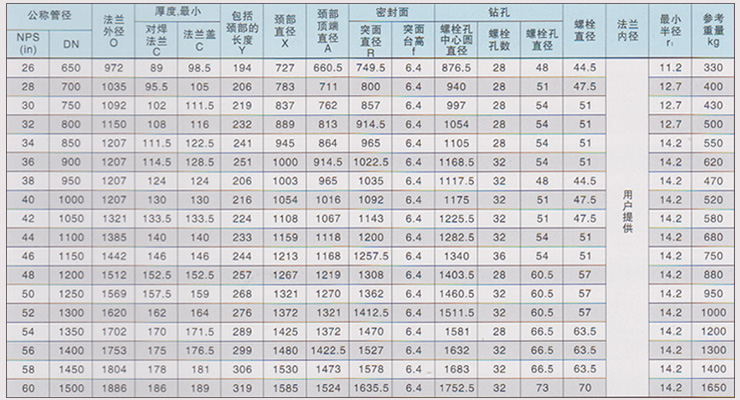A系列600磅級法蘭的尺寸(相當于MSS SP44)ASME16.47/A-1996(mm)